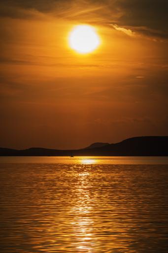 Keywords: lake balaton lake water sunset landscape colors nightfall summer dusk hungary in the evening lights light glow
