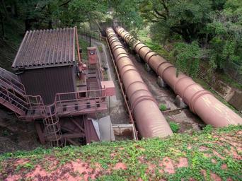 Keywords: Lake Biwa Canal (Kyoto) IMG 5588 a-6.JPG Biwako Canal Lake Biwa Canal Kyoto Japan I took this photograph 2010-10-05 Daderot Biwako Canal Keage Power Station Penstocks