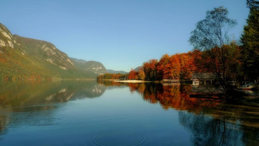 Keywords: lake bohinj slovenia landscape scenic fall autumn foliage colors water reflections mountains nature outside