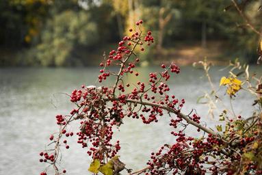 Keywords: lake bush water nature shrubs autumn tree landscape forest bushes mirroring red plant waters hedge road