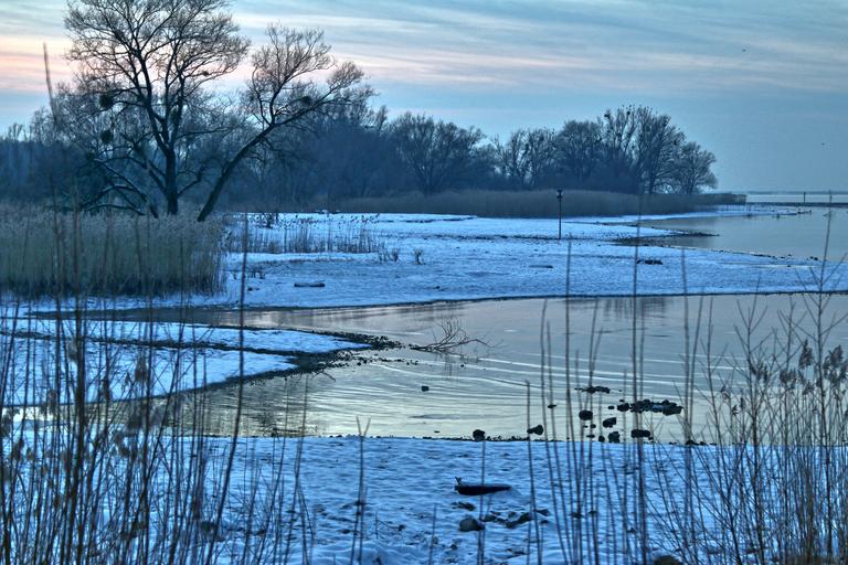 Keywords: lake constance bregenz winter port cold nature evening austria mirror romantic beautiful water snow away ice frozen cold trees