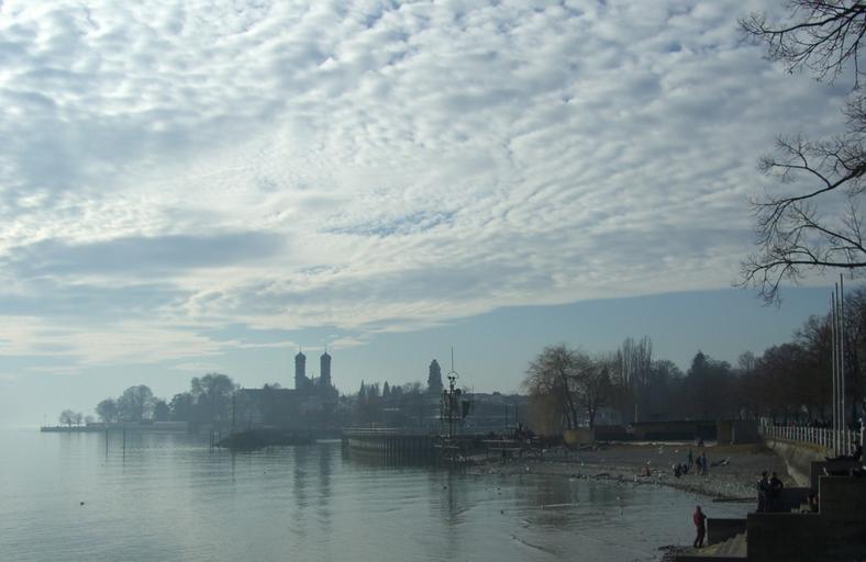 Keywords: lake constance friedrichshafen castle hazy clouds promenade