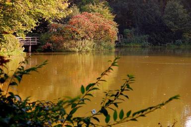 Keywords: lake forest autumn bridge water trueb boardwalk wooden bridge waters mood