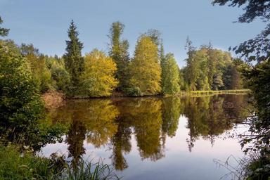 Keywords: lake forest sky mirror image autumn nature landscape trees mirroring pond mood forest shores water waters leaves autumn forest scenic bank vision idyll lonely