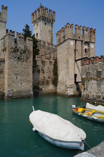 Keywords: lake garda italy view boat boats debris tower fortress castle ferie trip water