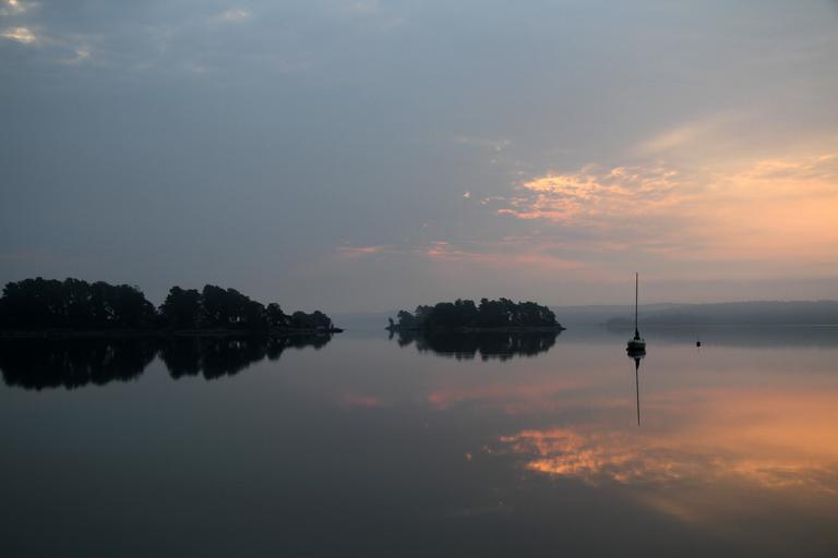 Keywords: lake himmel pink cloud boats still mist morning dawn
