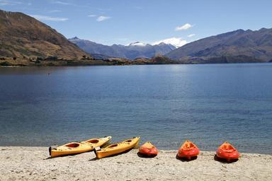 Keywords: lake kayak canoe landscape view mountain sky nature blue water travel tourism summer outdoor rock scenic peaceful reflection scenery tranquil natural vacation environment