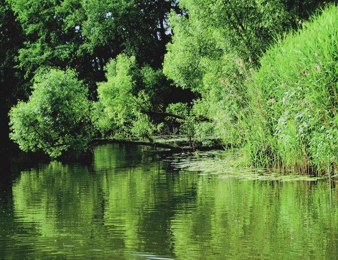 Keywords: lake light reflex shadow mood rest trees shrubs green mirroring water