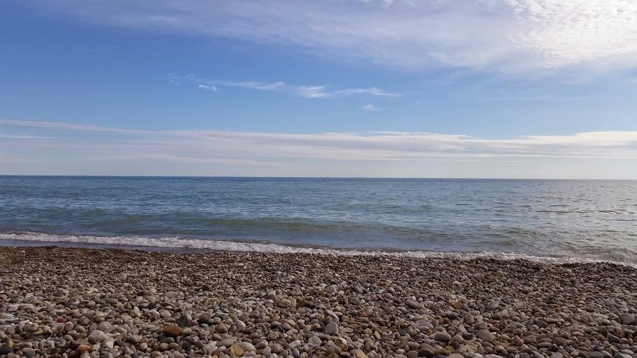 Keywords: lake michigan stony beach sky horizon
