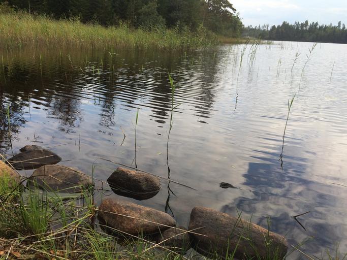 Keywords: lake mirroring water beach stone park forest nature
