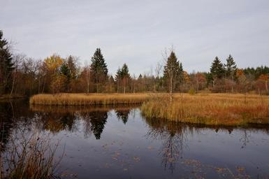 Keywords: lake moor forest palsen tree spruce fir nature reserve landscape sky autumn nature live grass meadow road coniferous forest crown pine ruflektion mirroring