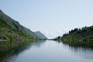 Keywords: lake mountain sky blue green water landscape nature beautiful trees river rock scenery travel natural outdoor tourism summer trekking holiday scenic