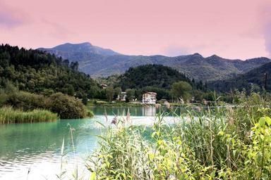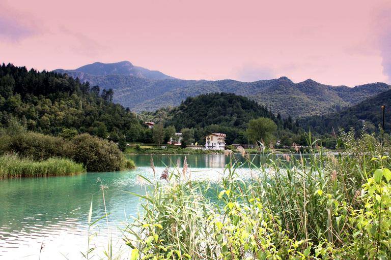 Keywords: lake mountains nature landscape sky abendstimmung ledro reed water italy bergsee