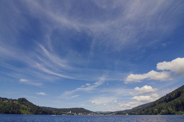 Keywords: lake sea water blue summer sky mountain clouds nature heaven