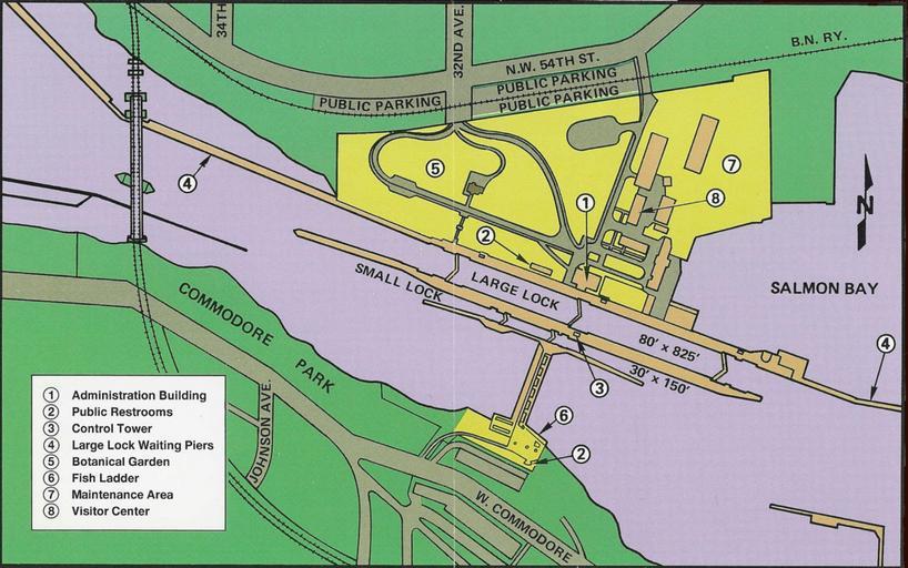 | Keywords: Lake Washington Ship Canal Fish Ladder pamphlet 03.jpg Map of the Hiram M Chittenden Locks Seattle Washington scanned at 600 dpi and cleaned up Major features are labeled on the map; buildings in the locks complex are numbered and a legend indicates what they are 78002751 Back cover of U S Government Printing Office Pamphlet 1996-792-501 Lake Washington Ship Canal Fish Ladder The same map can also be found on the back cover of U S Government Printing Office Pamphlet 1999-791-887 Lake Washington Ship Canal and Hiram M Chittenden Locks Presumably 1996 based on pamphlet number US government Original work of the US Federal Government is public domain PD-USGov Hiram M Chittenden Locks maps and diagrams Hiram M Chittenden Locks Fish ladder Maps made in the 20th century Site plans |