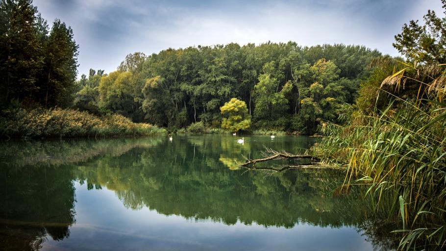 Keywords: lake water nature sun surface forest reflection swans autumn slovakia