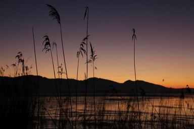Keywords: lake winter evening sunset ice cold water mountains bank