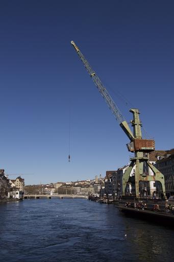 Keywords: lake zurich switzerland crane harbor river water historic structure logistics cargo port transportation steel metal construction waterfront