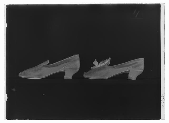 | Keywords: Lakejsko, pumps, gjorda av mörkbrunt getskinn - Livrustkammaren - 486-negative.tif Skon är skuren i ovanläder och bakstycke som förenas med dubbla sidsömmar Tåformen är bred och rak och har en tåkappa Klacken är klädd med skinn halvhög och något insvängd <br/><br/>Ovanlädret är fodrat med beigefärgad linne vävt i tuskaft Bakkappan är fodrad med beigefärgat getskinn Innersulan saknas <br/><br/>Ovanlädret utdrages i en plös upp mot vristen med rak avslutning och rundade hörn Ringningen är kantad med ett mörkbrunt 12 mm brett sidenband På båda sidor av plösen på insidan sticker två snörstumpar ut från kantbandet De är ihopknutna <br/><br/>Klacken är försedd med en stiftlapp fäst med sex mässingsspikar Yttersulan gjord av sämskat koläder På sulan i hålfoten står med svart skrivet No 2 Detta är överstruket med blått Intill står med blått skrivet 4 samt är stämplat 24 På sulans tåparti är det stämplat 40 och 5 <br/><br/>Inuti skon ligger en svart rosett av veckat siden på en bottenplatta av grovt linne Rosettens bredd 28 mm höjd 110 mm Rosetten pryds av ett spänne i vitmetall i form av en blomsterkvist bredd 16 mm höjd 28 mm original caption goatskin Färg mörkbrun d1 - dräkt - yttermaterial material getskinn - linen Färg beige d2 - dräkt - foder material linne - goatskin Färg beige d2 - dräkt - foder material getskinn - silk Färg mörkbrun d4 - Dräkt - passpoaler band kantning uppslag material siden size mm 258 size mm 64 sula size mm 36 klack size mm 38 klack g 88 LRK place of origin original filename LN_B01980_004860 63705 inventory number LRK 27083 486 CC0 Lakejsko pumps gjorda av mörkbrunt getskinn - Livrustkammaren - 486 tif |