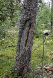 Keywords: Lakkeravatj barktakt.jpg en Pine with scars from Sami bark peeling Låkkeråvatj Jokkmokk Swedish Lapland sv Tall med invallad skada efter samisk barktäkt vid Låkkeråvatj Jokkmokk Lule lappmark own Skogsfrun 2007-09-02 Sami culture Jokkmokk Municipality Culturally modified trees Pinus sylvestris in Sweden |