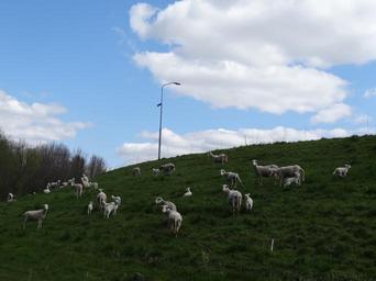 Keywords: lambs sheep mammals frolic netherlands young cattle agriculture jump animals spring farm nature animal pasture outdoor life landscape farm animal