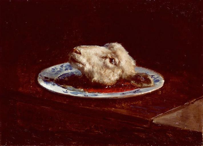 Keywords: Lammehoved på fad (1880 painting).jpg Artwork Creator Viggo Johansen Lammehoved på fad A lamb's head on a plate 1880 oil canvas 37 x 53 cm Institution Skagens Museum Skagen http //www skagensmuseum dk/index php id 530 Other versions PD-old-100 1880 paintings Dead animals in art Paintings by Viggo Johansen in Skagens Museum Lambs in art |