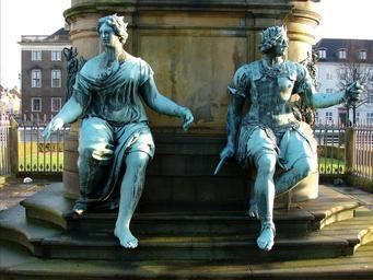 Keywords: Lamoureux skulpturer.JPG Skulpturer fra Lamoureux' rytterstatue af Christian V Kongens Nytorv København own 2011-12 Orf3us Christian V statue in Kongens Nytorv PD-old-100