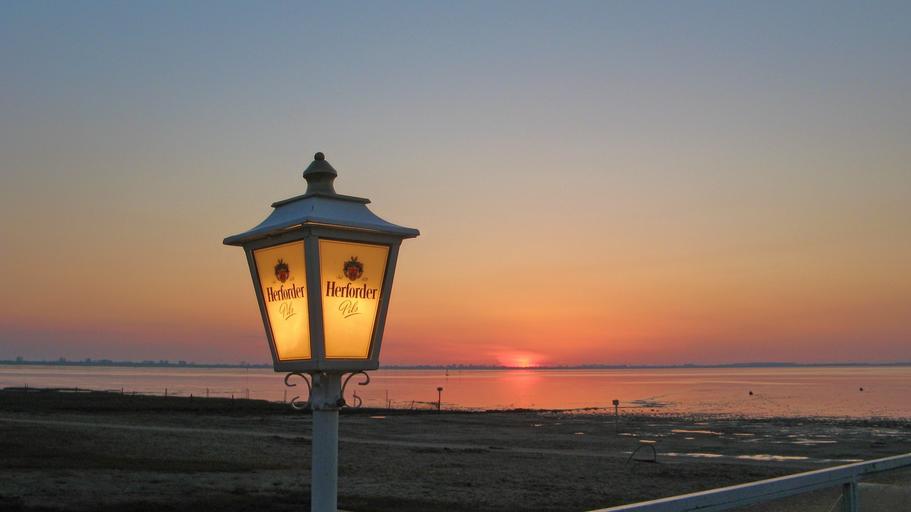 Keywords: lamp light street lamp lantern lighting north sea abendstimmung sunset atmospheric afterglow