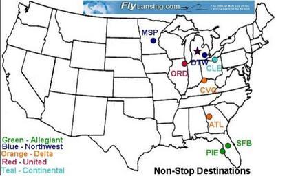 | Keywords: LAN Route Map 2008-May.jpg Updated Capital City Airport Route Map effective May 4th 2008 when Continental Airlines resumes daily service to Lansing from Cleveland en wikipedia dj1997 2007-11-10 RDULAN wikipedia en RDULAN cc-by-sa-3 0 original upload log page en wikipedia CLE_RM jpg 2007-11-10 05 17 Sox23 600×369× 42127 bytes <nowiki>update; Allegiant ends service to LAS</nowiki> 2007-09-23 18 15 RDULAN 600×369× 65031 bytes <nowiki>Updated Capital City Airport Route Map effective May 4th 2008 when Continental Airlines resumes daily service to Lansing from Cleveland </nowiki> Maps of cities served by flights from given airport Capital Region International Airport Transport maps of the United States |