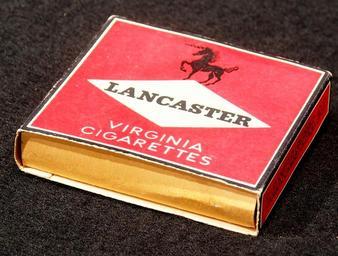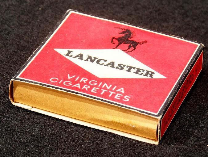 Keywords: Lancaster cigarettes pack, pic4.JPG Very old packaging of a product that is not produced and not sold any more own 2014-04-13 11 05 03 Alf van Beem CC-Zero Trademarked Lancaster cigarettes Cigarette packs