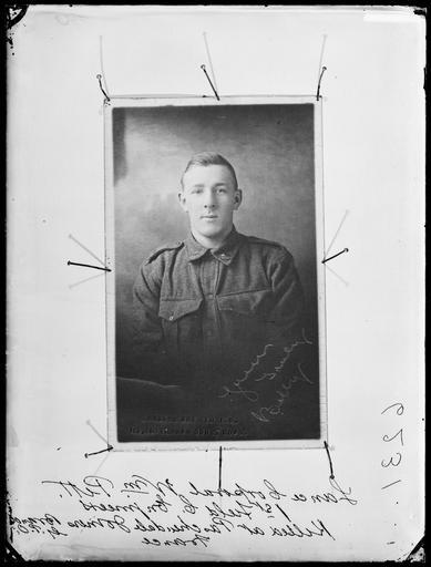 | Keywords: archives state records nsw staterecordsnsw newsouthwales blackandwhite glass plates glassplates wwi soldier war uniform monochrome people picture frame drawing sketch black and white Title: Lance Corporal William Pitt, 1st Field C. Engineers, late of Government Printing Office Killed at Paschendale, France. Dated: 1918 Digital ID: Series: NRS 4481 Government Printing Office glass plate negatives Rights: No known copyright restrictions www.records.nsw.gov.au/about-us/rights-and-permissions We'd love to hear from you if you use our photos/documents. Many other photos in our collection are available to view and browse on our website using Photo Investigator. Title: Lance Corporal William Pitt, 1st Field C. Engineers, late of Government Printing Office Killed at Paschendale, France. Dated: 1918 Digital ID: Series: NRS 4481 Government Printing Office glass plate negatives Rights: No known copyright restrictions www.records.nsw.gov.au/about-us/rights-and-permissions We'd love to hear from you if you use our photos/documents. Many other photos in our collection are available to view and browse on our website using Photo Investigator. |