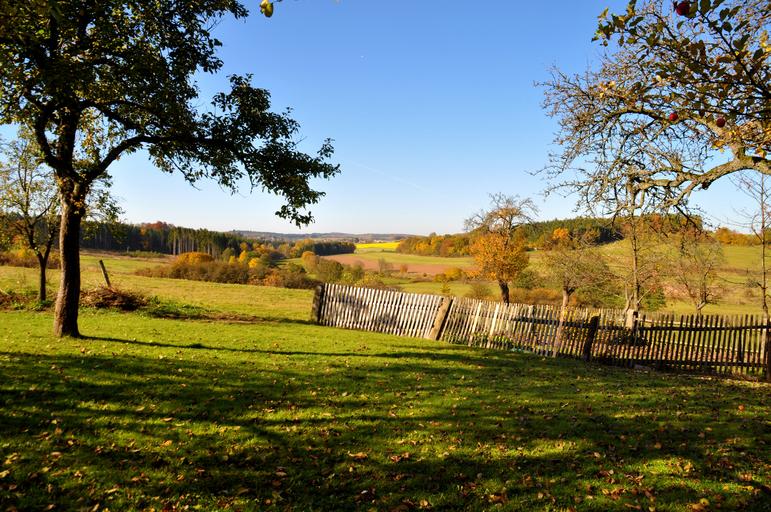 Keywords: land idyll landscape fence agriculture meadow wood fence autumn