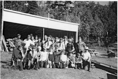 Keywords: land o lakes landolakes scouts venturers land o' o lakes bernard meeks bernardmeeks tracy hook tracyhook larry journal larryjournal brian hawley lorne flieler lorneflieler arnold flieler arnoldflieler wally paddick wallypaddick blackandwhite monochrome outdoor black and white Inscription on back of photo: Land O' Lakes Scouts & Venturers Group from Belleville at Hangar- Flieler's beach Mississagaggon Lake. Front Row: 5th from Left: Brian Hawley, 6th from Left: Larry Journal, 8th from Left: Tracy Hook, 10th from Left: Lorne Flieler. Other identified: 3rd from left (front): Bernard Meeks, Standing far Right: Wally Paddick Arnold Flieler may have taken this photo since he was Scoutmaster. Part of the Eileen Flieler Collection. Inscription on back of photo: Land O' Lakes Scouts & Venturers Group from Belleville at Hangar- Flieler's beach Mississagaggon Lake. Front Row: 5th from Left: Brian Hawley, 6th from Left: Larry Journal, 8th from Left: Tracy Hook, 10th from Left: Lorne Flieler. Other identified: 3rd from left (front): Bernard Meeks, Standing far Right: Wally Paddick Arnold Flieler may have taken this photo since he was Scoutmaster. Part of the Eileen Flieler Collection.