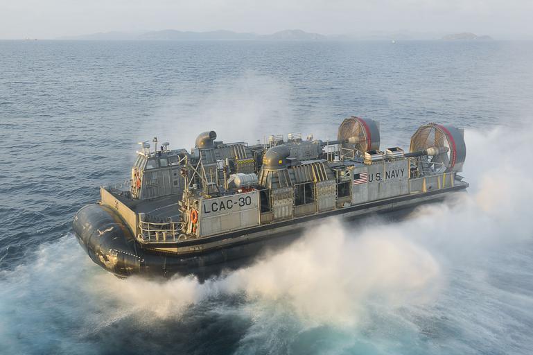 | Keywords: Landing Craft Air Cushion 30 departs USS Bonhomme Richard (130219-N-LM312-007).jpg en Landing Craft Air Cushion LCAC 30 assigned to Naval Beach Unit 7 departs the well deck of the amphibious assault ship USS Bonhomme Richard LHD 6 in the Gulf of Thailand The Bonhomme Richard Amphibious Ready Group is deployed in the U S 7th Fleet area of responsibility and taking part in Cobra Gold a Thai-U S co-sponsored multinational joint exercise designed to advance regional security by exercising a robust multinational force from nations sharing common goals and security commitments in the Asia-Pacific region http //www navy mil/view_image asp id 144160 http //www navy mil/management/photodb/photos/130219-N-LM312-007 jpg image link 2013-02-19 U S Navy/Mass Communication Specialist 3rd Class Adam D Wainwright 130219-N-LM312-007 Navy http //www navy mil/management/photodb/photos/130219-N-LM312-007 jpg PD-USGov-Military-Navy LCAC-30 ship 1990 Images from US Navy location GULF OF THAILAND Naval Beach Unit 7 |