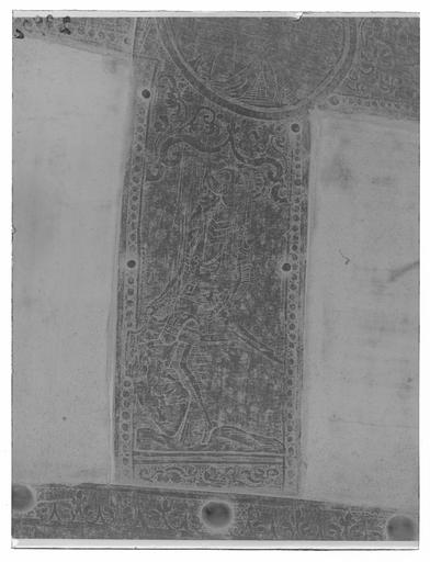 | Keywords: Ländpansar till hästrustning, troligen tillhörigt Johan III, 1500-tal - Livrustkammaren - 79460-negative.tif LSH artwork sv Bestående av 45 plåtar i varierande storlek sammanfogade med nitar och på insidan kantband av sämskat läder Längs kanterna rader av nitar med kullriga mässingsskallar Formen välvd och formad efter hästens kropp med bredare bakparti Varje sida delas in i 14 rektagulära fält klädda med mörkrött siden Kanter och flätverk med på den blanka utsidan ett heltäckande etsat mönster iform av nertill jaktscener och på banden helfigurbilder på män i olika typer av rustning varav några med sköldar Mellan figurbilderna runda medaljonger med byster av män och kvinnor i antikiserande kläder Pansarets övre del består av ett separat långsmalt stycke med framtill dekor av tätt rankverk och baktill format till en liggande hundliknande drake med lång ringlande svans uppspärrat gap och uppåtpekande öron Kroppen täckt av etsade lövliknade fjäll djurets längd 720 mm Insidan brunsvart och ojämn med tyliga slagmärken Längs nedre kanterna 20 mm breda band av brungult sämskat läder original caption century 16 velvet Färg mörkt röd material sammet - brass - steel - leather Färg brungul material läder g 8600 size mm 890 650 340 LRK Johan III av Sverige Tre Konungar på Åbo slott 1993 Björneborg - Johans stad Satakunta Museum Björneborg/Pori 2008 Trofast - hov och tass i kunglig tjänst 2010-2011 Livrustkammaren Trogna vänner - Kungliga hästar och hundar 2011-2012 Museiverket/Finlands nationalmuseum place of origin original filename LN_E02915 59504 inventory number LRK 22862 79460 CC0 Ländpansar till hästrustning troligen tillhörigt Johan III 1500-tal - Livrustkammaren - 79460 tif <gallery caption Different images of same object > File Ländpansar till hästrustning troligen tillhörigt Johan III 1500-tal - Livrustkammaren - 36659 tif File Ländpansar till hästrustning har troligen tillhört Johan III 1500-tal - Livrustkammaren - 10975 tif File Ländpansar till hästrustning troligen tillhörigt Johan III 1500-tal - Livrustkammaren - 2415 tif File Ländpansar till hästrustning troligen tillhörigt Johan III 1500-tal - Livrustkammaren - 70895 tif </gallery> <gallery caption Related objects > File Manpansar möjligen tillhörigt Johan III 1500-talets mitt - Livrustkammaren - 19537 tif LRK 22860 File Manpansar möjligen tillhörigt Johan III 1500-talets mitt - Livrustkammaren - 36657 tif LRK 22860 File Manpansar möjligen tillhörigt Johan III 1500-talets mitt - Livrustkammaren - 62337 tif LRK 22860 File Bogpansar till hästrusning troligen tillhörigt Johan III 1500-tal - Livrustkammaren - 35526 tif LRK 22861 File Manpansar möjligen tillhörigt Johan III 1500-talets mitt - Livrustkammaren - 70899 tif LRK 22860 File Bogpansar till hästrusning troligen tillhörigt Johan III 1500-tal - Livrustkammaren - 44085 tif LRK 22861 File Bogpansar till hästrusning troligen tillhörigt Johan III 1500-tal - Livrustkammaren - 79454 tif LRK 22861 File Manpansar möjligen tillhörigt Johan III 1500-talets mitt - Livrustkammaren - 79458 tif LRK 22860 File Manpansar möjligen tillhörigt Johan III 1500-talets mitt - Livrustkammaren - 53776 tif LRK 22860 File Manpansar möjligen tillhörigt Johan III 1500-talets mitt - Livrustkammaren - 45215 tif LRK 22860 File Manpansar möjligen tillhörigt Johan III 1500-talets mitt - Livrustkammaren - 10973 tif LRK 22860 File Manpansar möjligen tillhörigt Johan III 1500-talets mitt - Livrustkammaren - 28096 tif LRK 22860 File Utställningsbild sadlar hästrustningar mm - Livrustkammaren - 77173 tif LRK 22861 File Manpansar möjligen tillhörigt Johan III 1500-talets mitt - Livrustkammaren - 2413 tif LRK 22860 File Manpansar möjligen tillhörigt Johan III 1500-talets mitt - Livrustkammaren - 35519 tif LRK 22860 </gallery> |