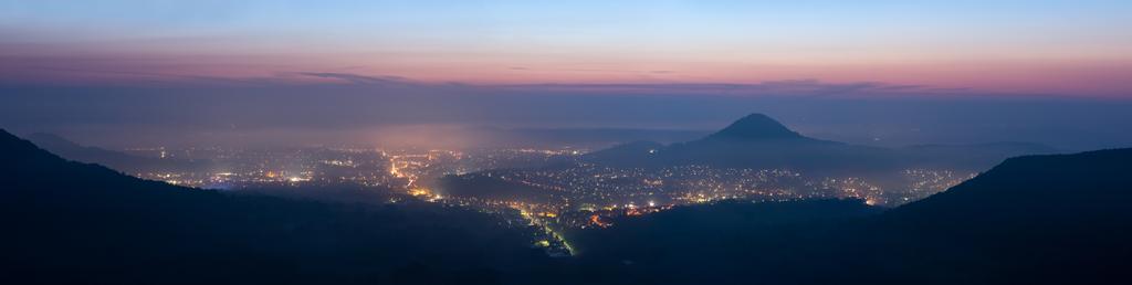 Keywords: landscape achalm reutlingen night fog city lights traffic view panorama eningen outlook