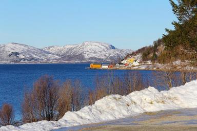 Keywords: landscape beautiful sky sea fjord snow mountain nordic house winter travel lauklines kystferie kvaloya kvaløysletta norway tromso scandinavia europe