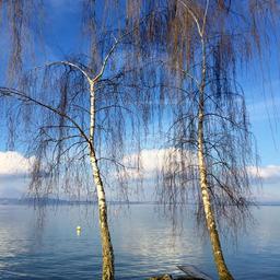 Keywords: landscape birch february sky lake mirroring lake constance romanshorn switzerland