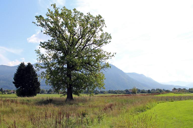Keywords: landscape chiemgau tree individually meadow distant view distant nature view mountains scenic