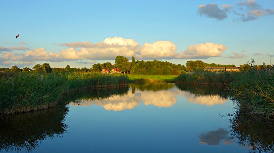 MAKE A MEME View Large Image landscape dutch landscape waterway rushes houses clouds sky reflections afternoon sunshine