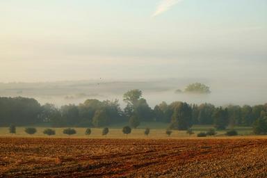 Keywords: landscape fog nature mood trees atmosphere autumn morning romantic sunrise morgenstimmung atmospheric sky in the morning in the early morning friendly in the free of course agriculture field arable wide clouds meadow infinite ground foresight cool