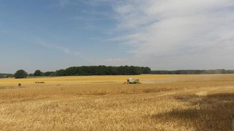 Keywords: landscape harvest field cornfield clouds combine harvester harvest time sky