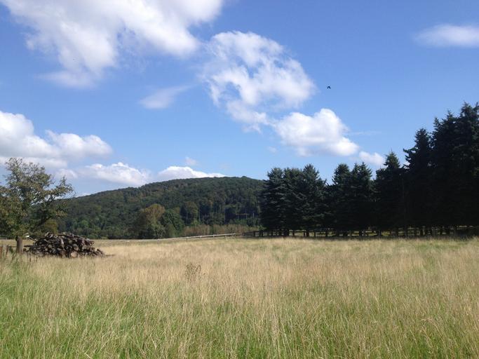 Keywords: landscape hill meadow nature forest outlook idyllic clouds panorama sky