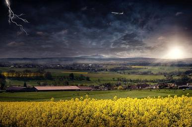 Keywords: landscape mood clouds thunderstorm flash force of nature sky threatening storm thundercloud gewitterstimmung