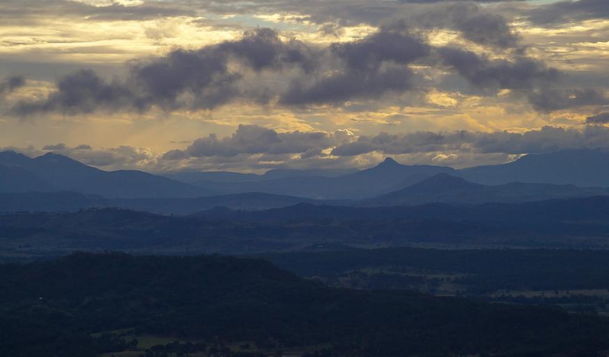 Keywords: landscape mountains hills ranges evening dusk clouds sky rural views distance scenery australia queensland