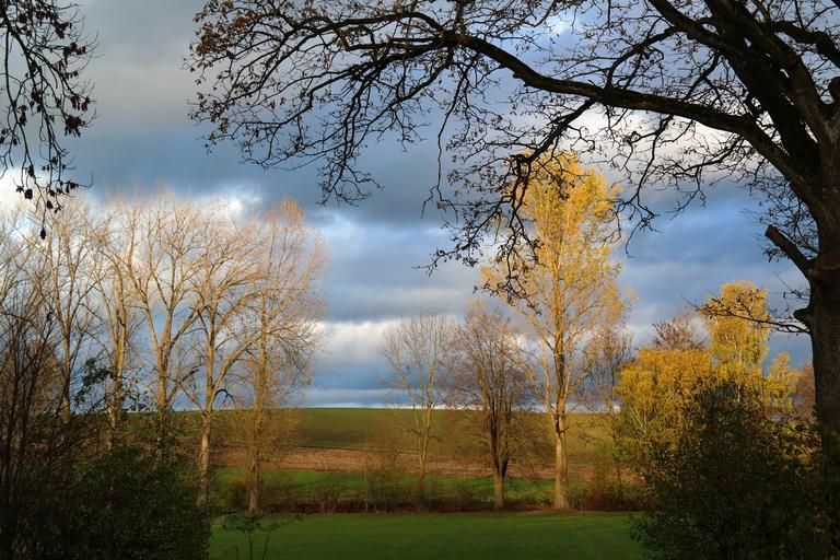 Keywords: landscape nature autumn mood idyll autumn light autumn emerge coloring sunlight intensive intense colours light shadow hell dark sky sky blue trees