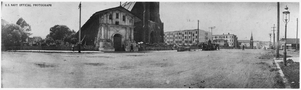 | Keywords: Landscape photograph of San Francisco during the Earthquake and Fire of 1906 - NARA - 296862.tif San Francisco during the Earthquake and Fire of 1906 Scope and content This is a wide angle view ;Full caption Across from Mission Dolores on Dolores Street looking northward down the street The old MIssion survived but the newer chursh was a total loss General notes This photograph was most likely printed in the 1950s 296862 Local identifier Mission San Francisco de Asis Department of Defense Department of the Navy Mare Island Naval Shipyard Office of the Commander Office of the Shipyard Historian 1976 - ca 1996 NARA's Pacific Region San Bruno NRHAS 1000 Commodore Drive San Bruno CA 94066-2350 04/1906 Record group Record Group 181 Records of Naval Districts and Shore Establishments 1784 - 2000 Record group ARC 510 Subject Files compiled 1976 - 1996 documenting the period ca 1854 - ca 1996 Series ARC 296821 File unit Earthquake 1906 1 of 2 1906 - ca 1980 File unit ARC 296854 Variant control numbers NAIL Control Number NRHS-181-MINSYHISTSUBJ-EQ1906 1 -8<br /> Other Identifier NY9-28413-3-56 yes Other versions NARA images of California - NARA-cooperation PD-USGov Mission Dolores San Francisco earthquake of 1906 Buildings damaged by earthquakes 1906 Mission District San Francisco NARA images of San Francisco County California Black and white photographs of religious buildings California Black and white photographs of San Francisco Earthquake Panoramics of San Francisco |