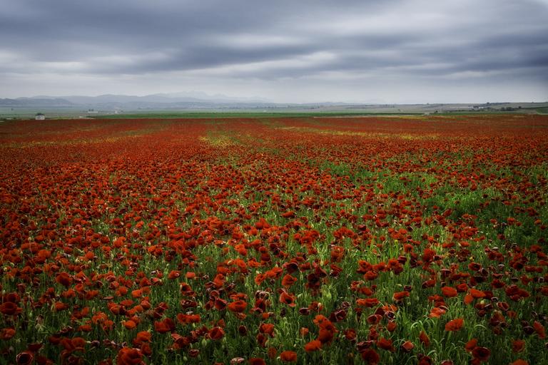 Keywords: landscape poppies field of poppies beauty field red wild field clouds