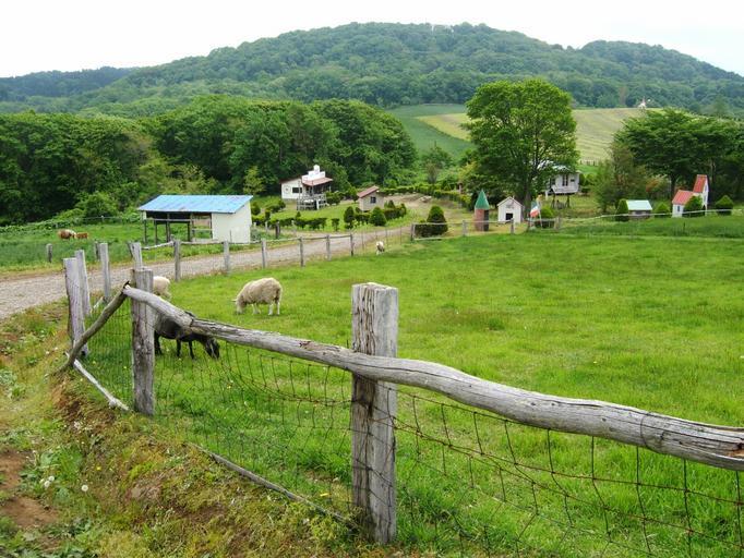 Keywords: landscape ranch japan hokkaido fence sheep peaceful