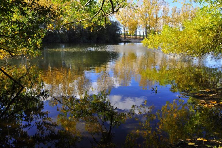 Keywords: landscape scenic autumn fall colorful trees leaves water reflection calm outdoors foliage peaceful rural